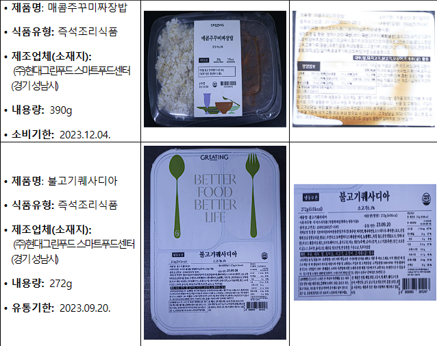 제조업체(소재지): (주)현대그린푸드 스마트푸드센터 (경기 성남시)