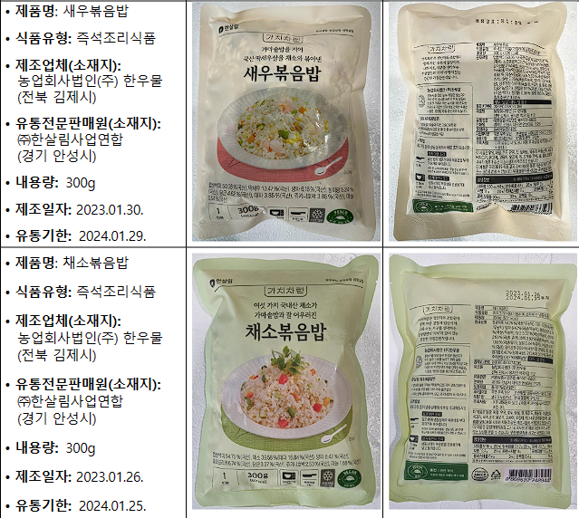 • 유통기한: 2024.01.29.• 제품명: 채소볶음밥