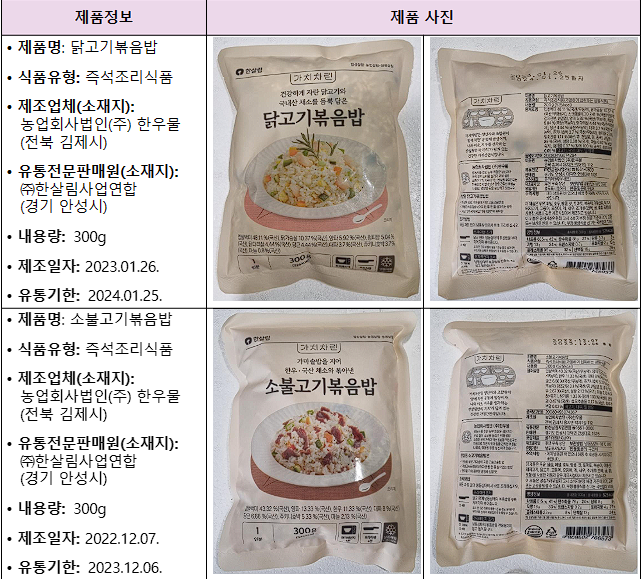 • 제조업체(소재지): 농업회사법인(주) 한우물 (전북 김제시)