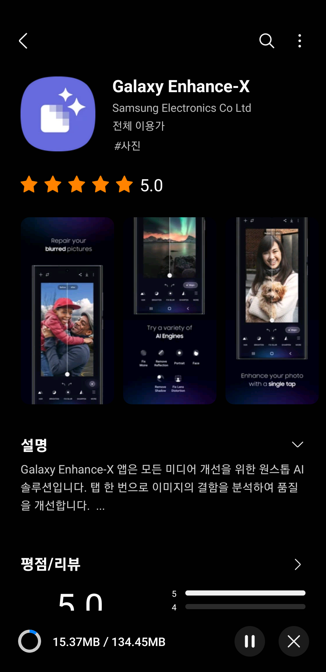 Galaxy Enhance-X 앱은 모든 미디어 개선을 위한 원스톱 AI 솔루션입니다. 탭 한 번으로 이미지의 결함을 분석하여 품질을 개선합니다. 유저는 AI 기반 기법을 적용하여 갤러리에 저장된 이미지를 복