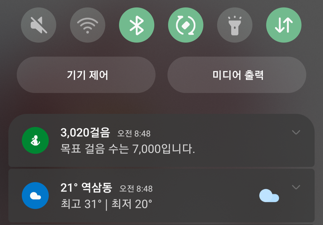 먼저 최상단 알림창을 쓸어 내려서 날씨 정보가 보이게 하세요