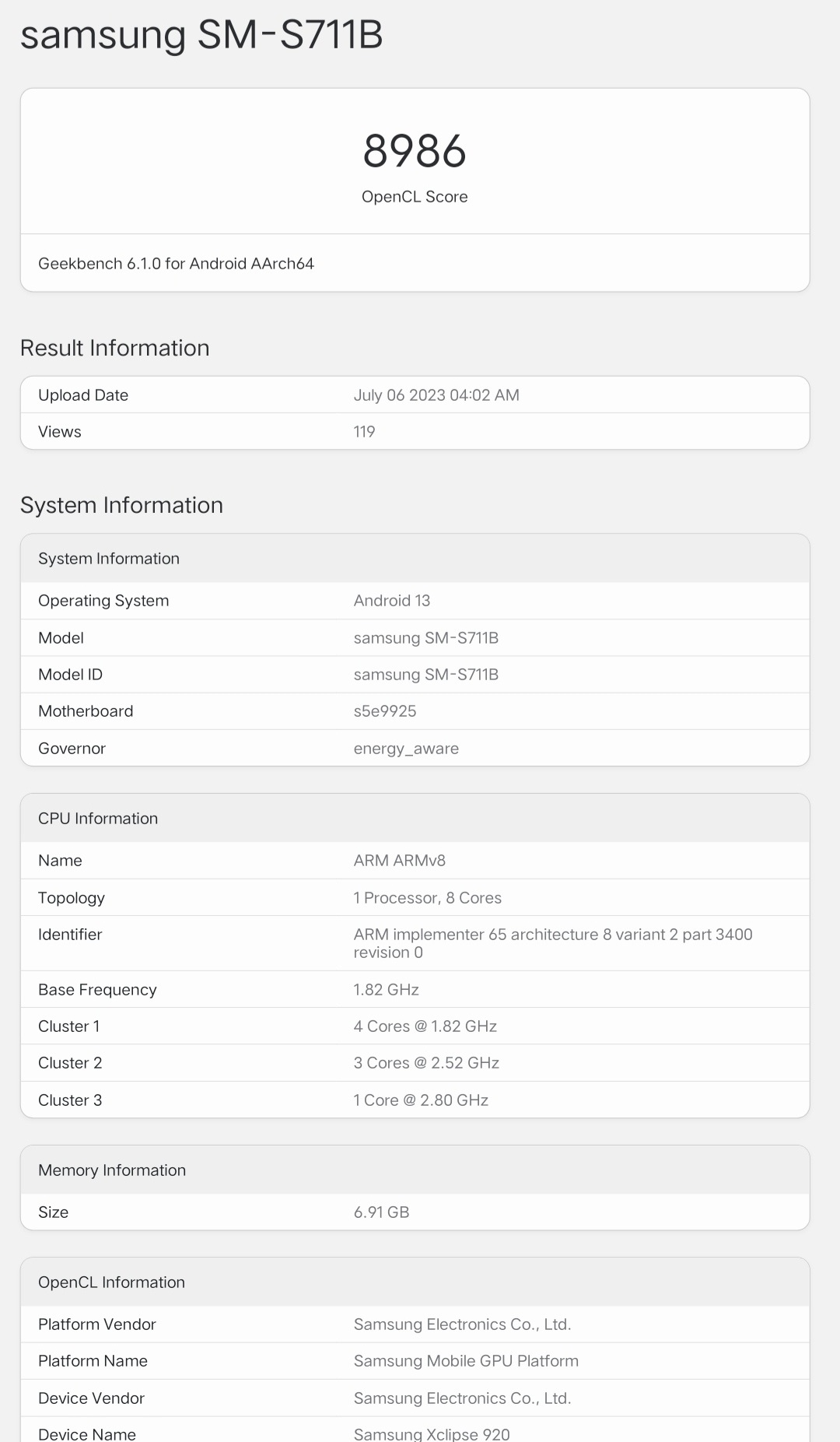 그런데 S22FE는 나오지 않으면서, 이제 FE 시리즈가 단종된 것이 아니냐는 주장들이 많이 제기 됐었고, 조용히 S23 시리즈로 넘어가면서 그 의견이 기정사실화 되어 가던 중, S23FE의 긱벤치 점수가 포착되어 다시금 FE 시리즈가 나오는 것인가에 대한 관심이 커졌습니다.