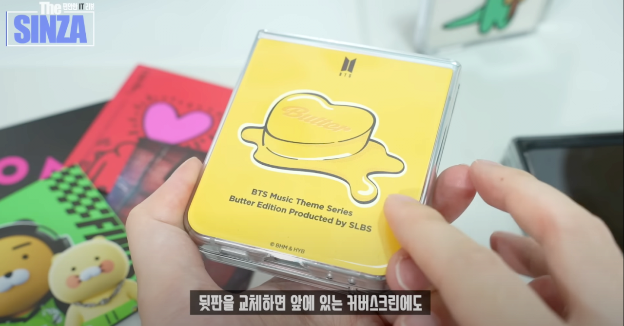 그래서 후면부에 이렇게 bts Butter 테마의 플레이트를 끼우면, 자동으로 컨텐츠를 다운로드 받고, 플렉스 윈도우를 바꾸어 주는데.....