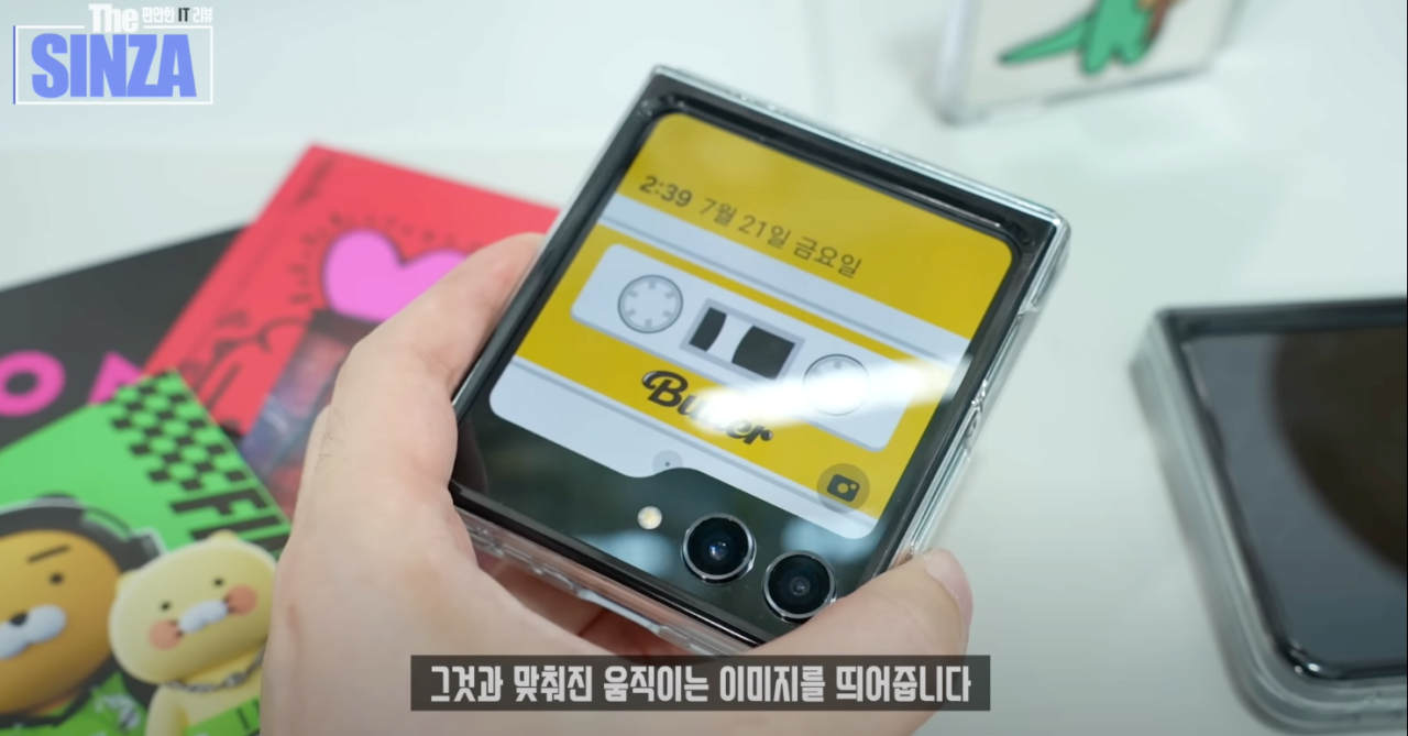 그런데 이번 플립5는 외부 화면을 아주 크게 확대하여 위젯을 배치하거나 앱을 실행하는 등의 일도 수행할 수 있게 되었습니다. 한편에서는 다꾸 하듯이 꾸미는 맛이 사라진 것 아니냐는 우려도 있습니다만, 위젯을 비롯하여 각종 움짤과 이미지를 넣을 수 있기 때문에 오히려 폰 자체는 깔끔하게 유지하면서 나만의 개성도 뽐낼 수 있는 장점이 생기지 않았나 싶습니다.