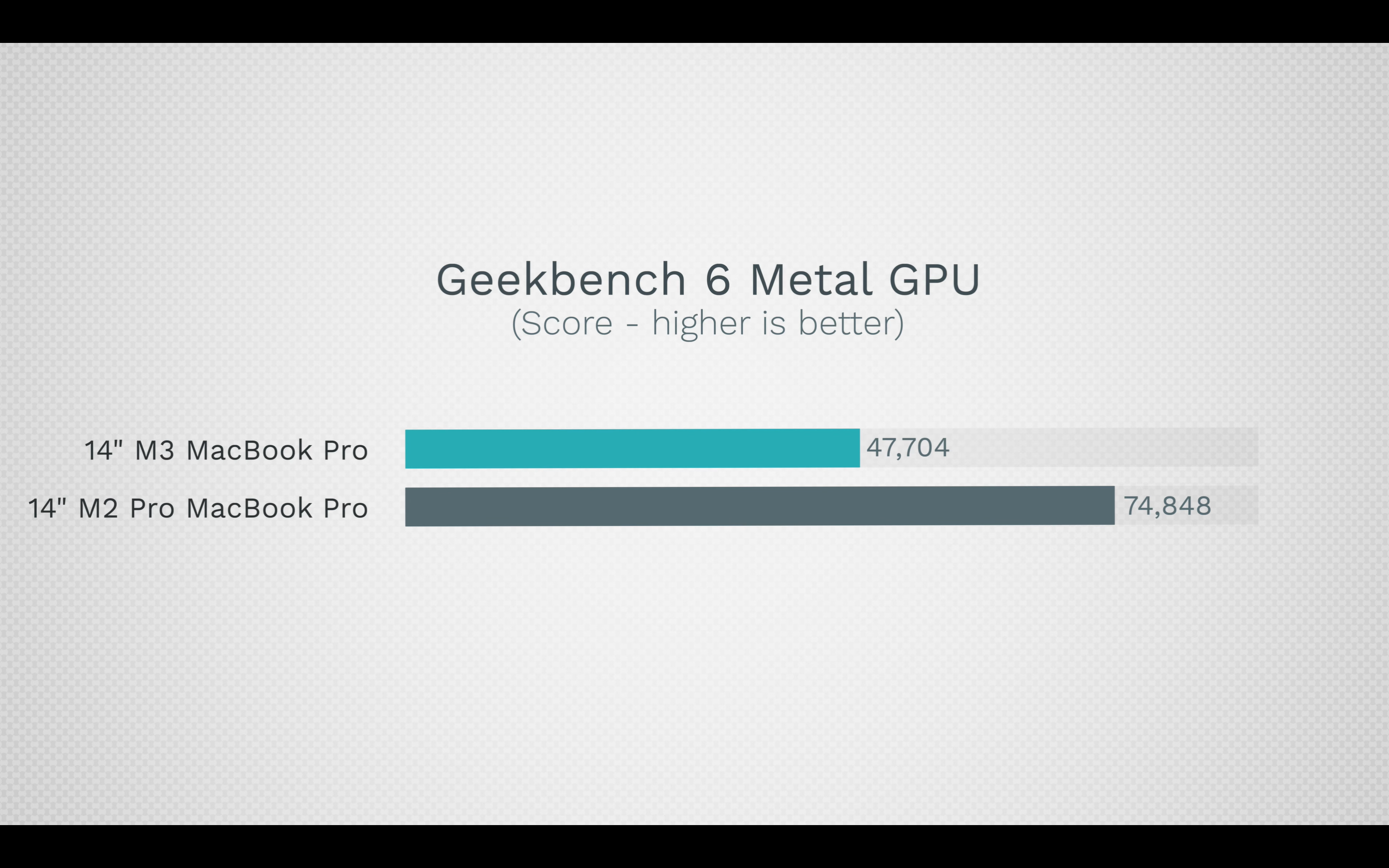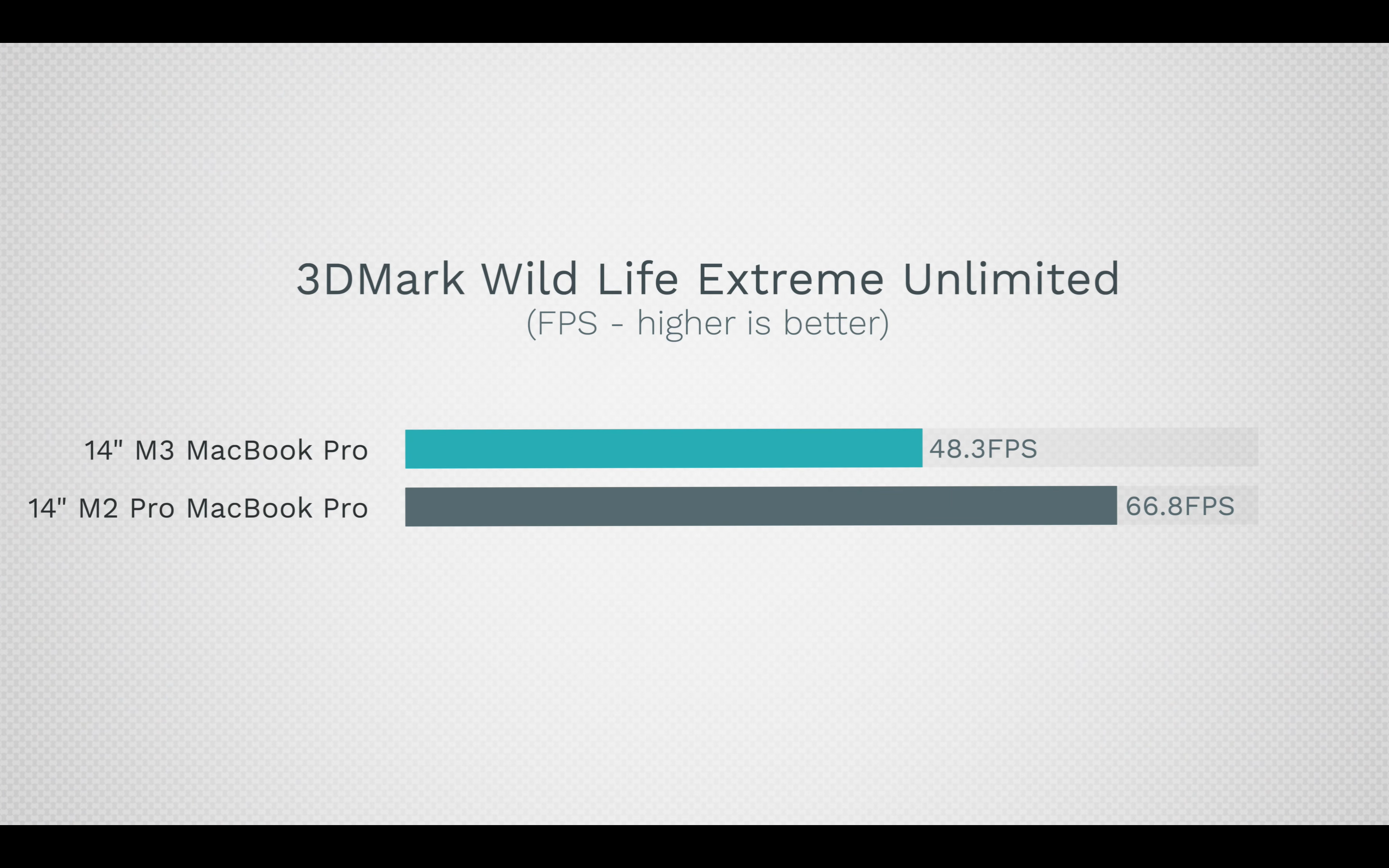 GPU 테스트에서는 확실히 체급의 차이가 보였습니다. 긱벤치6 GPU (Metal) 테스트에서는 57% 가량 차이가 났고, 3D Mark 에서는 38% 가량 FPS 차이가 발생했습니다. 이건 체급이 완전히 다른 제품이라는 소리죠.