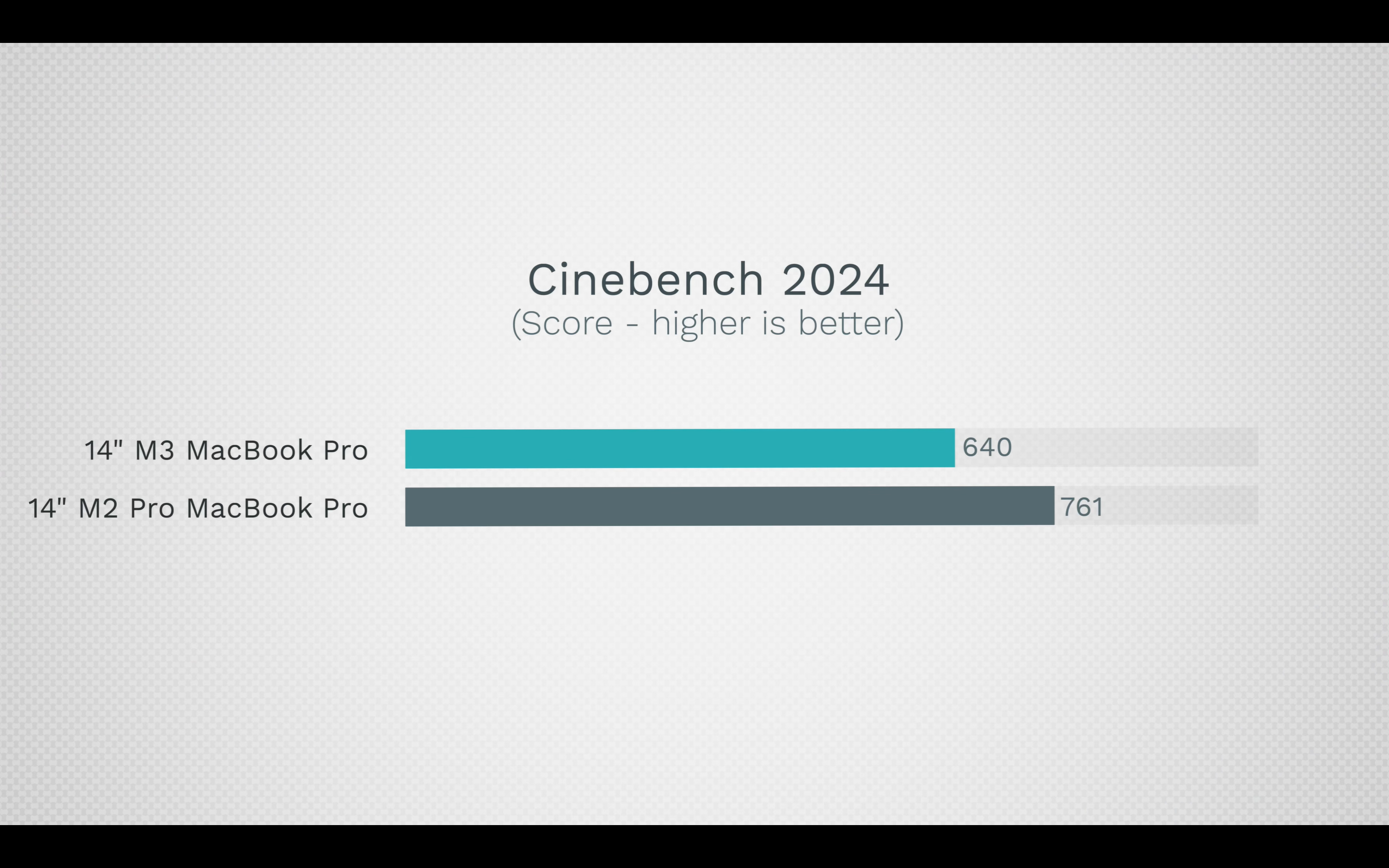 비교 대상은 M2 맥북프로가 아니라 M2 Pro 맥북프로 16기가 모델입니다. 그 이유는 현재 M3 기본형 제품과 M2 Pro 맥북프로 해당모델이 북미 기준 같은 1599달러이기 때문이라고 합니다. 같은 가격대의 두 제품을 두고 비교를 하는 거죠.