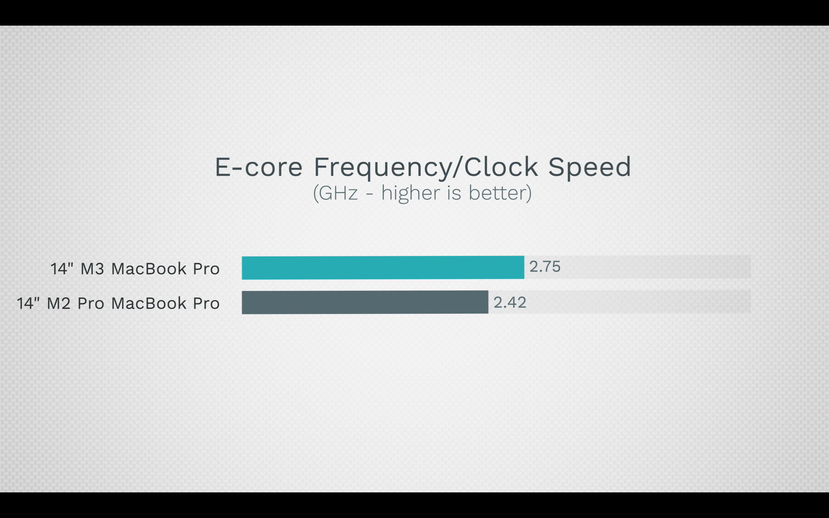 M3 맥북프로 기본형의 E코어 (저전력 코어)의 클럭이 M2Pro 맥북프로 보다 더 높게 나왔다는 겁니다. E코어에서의 개선이 있었다는 소리겠죠.