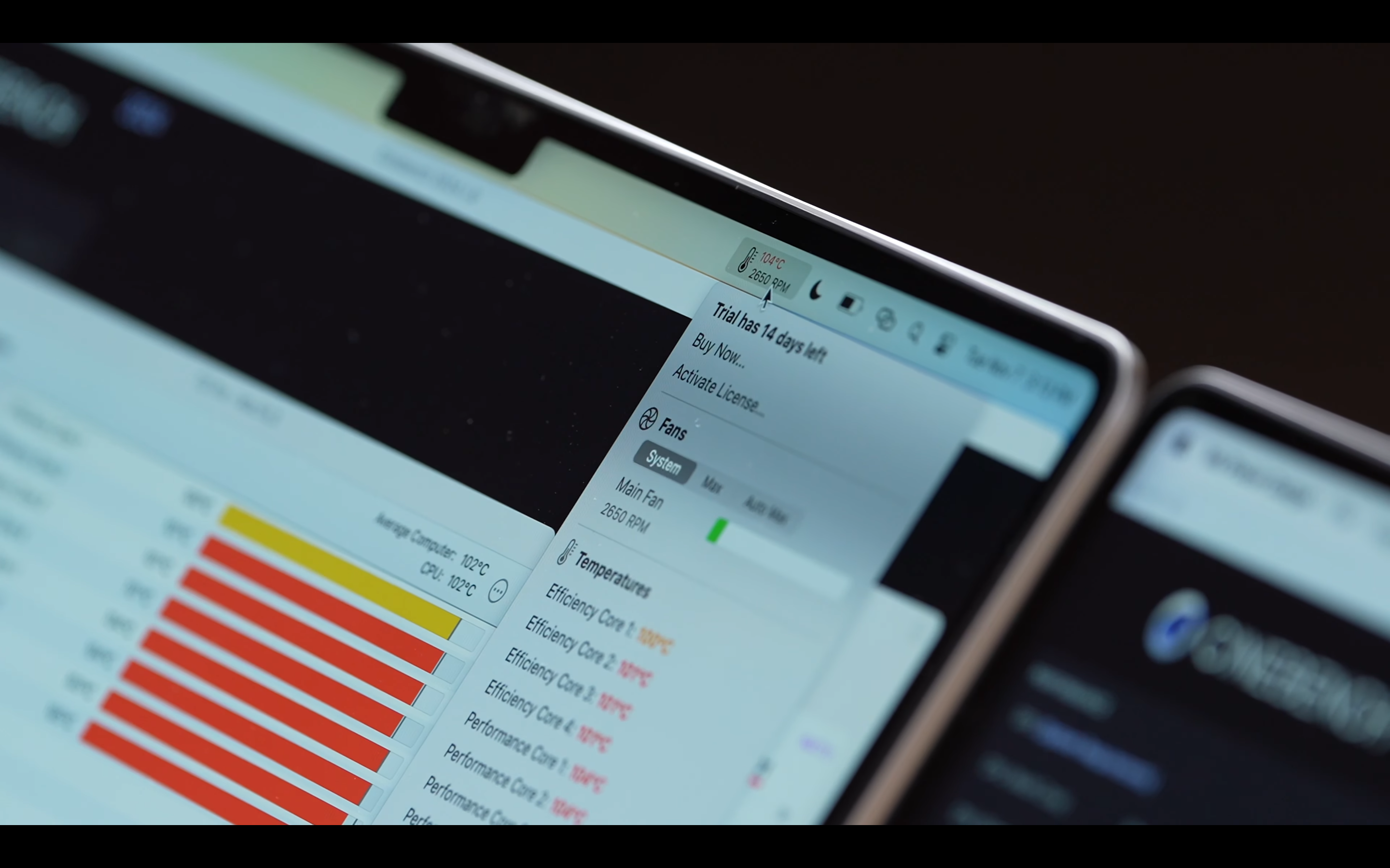 이번 M3 맥북프로는 100도를 훌쩍 넘어서서 108도까지 순식간에 찍고 바로 쓰로틀링이 걸리는 모습을 보여주었다는 겁니다.
