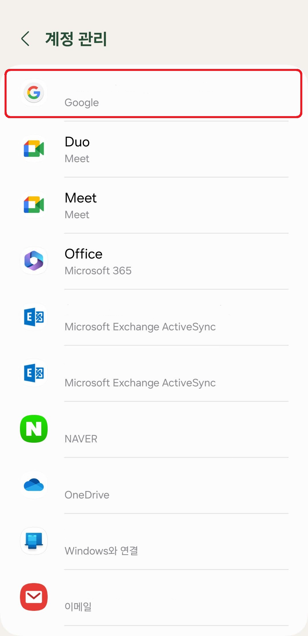 [설정]에서 맨 위에 나오는 프로필 부분을 누르고 '로그아웃'을 꼭 해주시기 바랍니다. 그 다음으로는 '계정 및 백업'으로 가신 다음 구글 계정을 누르시고, 계정 삭제를 눌러주세요.