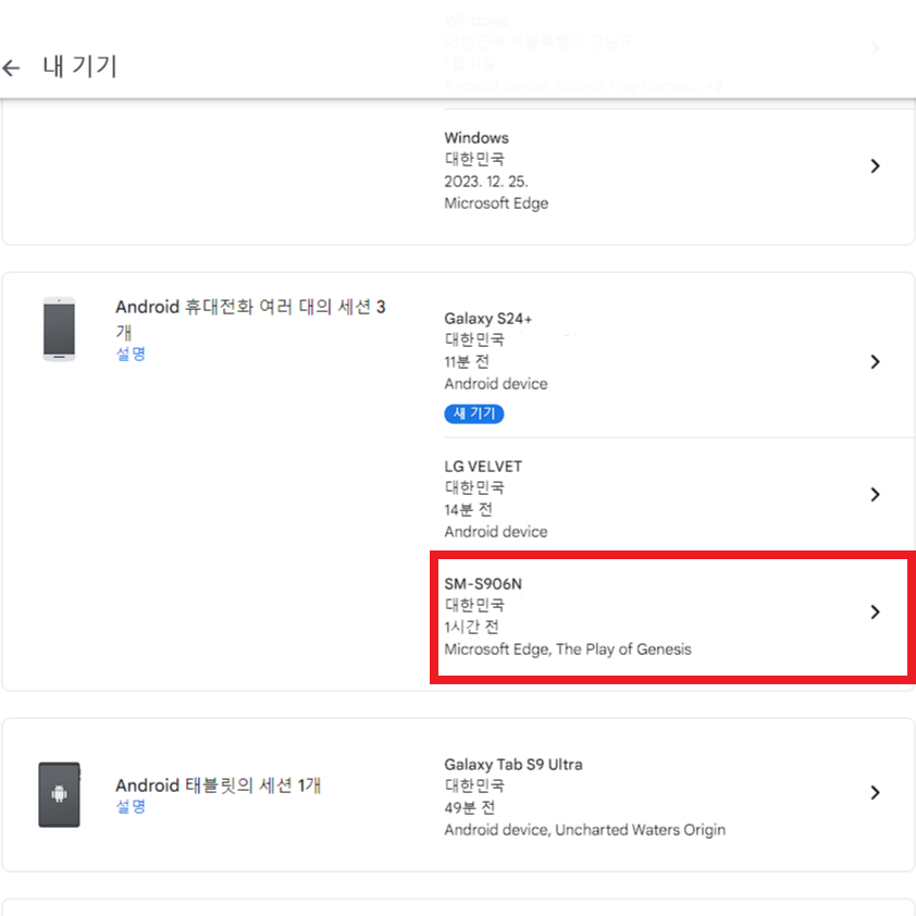그리고 한번 더 확실하게 처리하시려면 나중에 account.google.com 으로 접속하셔서 기존에 저장되어 있던 기기를 삭제하면 됩니다.