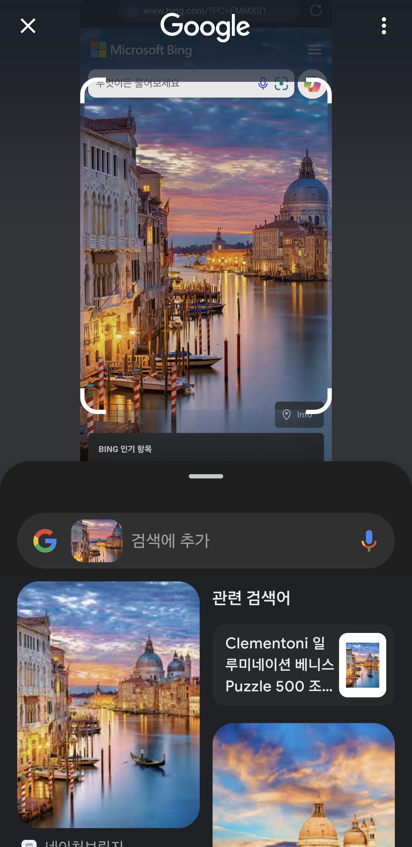 참고로 하단에 뜨는 검색 창에서 음성이나 사진으로 검색도 당연히 됩니다.