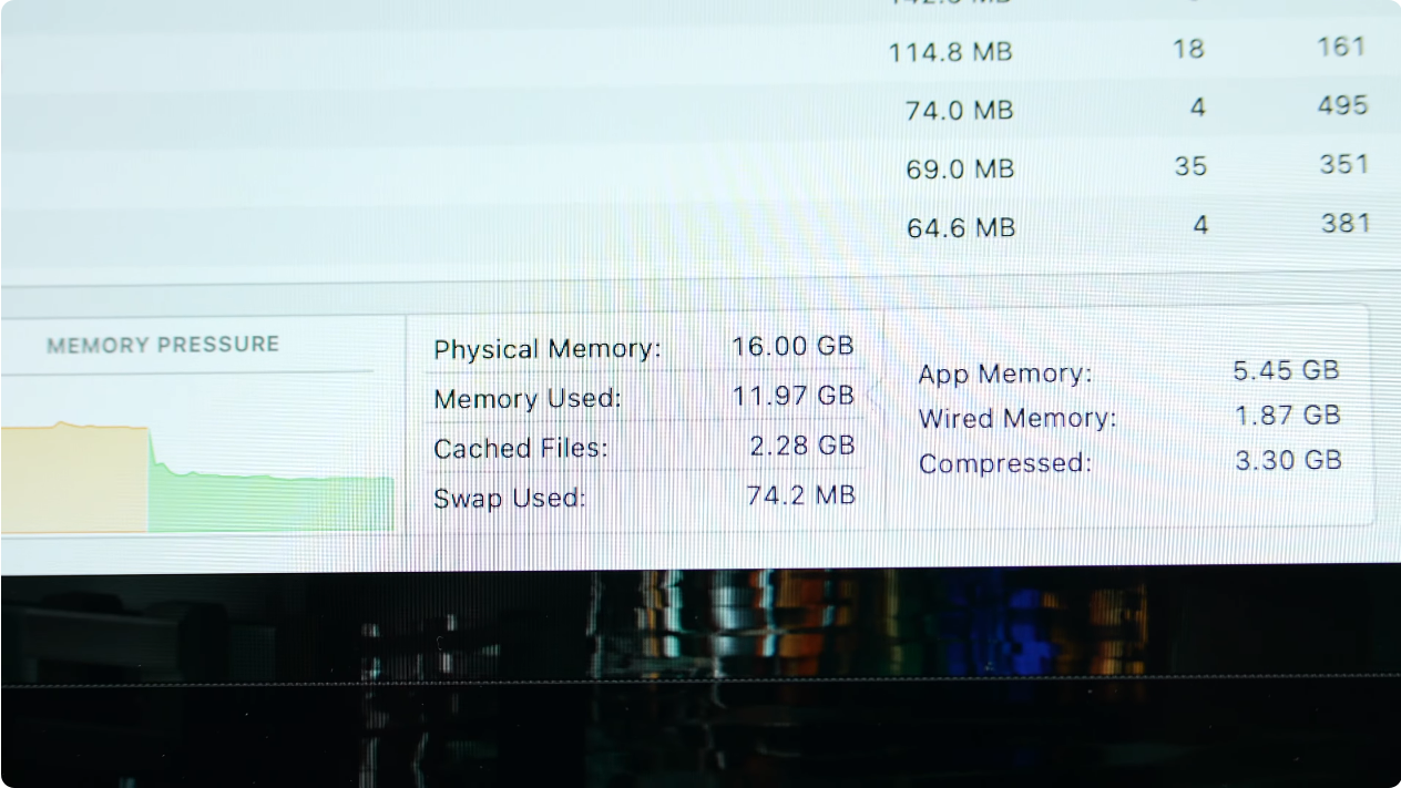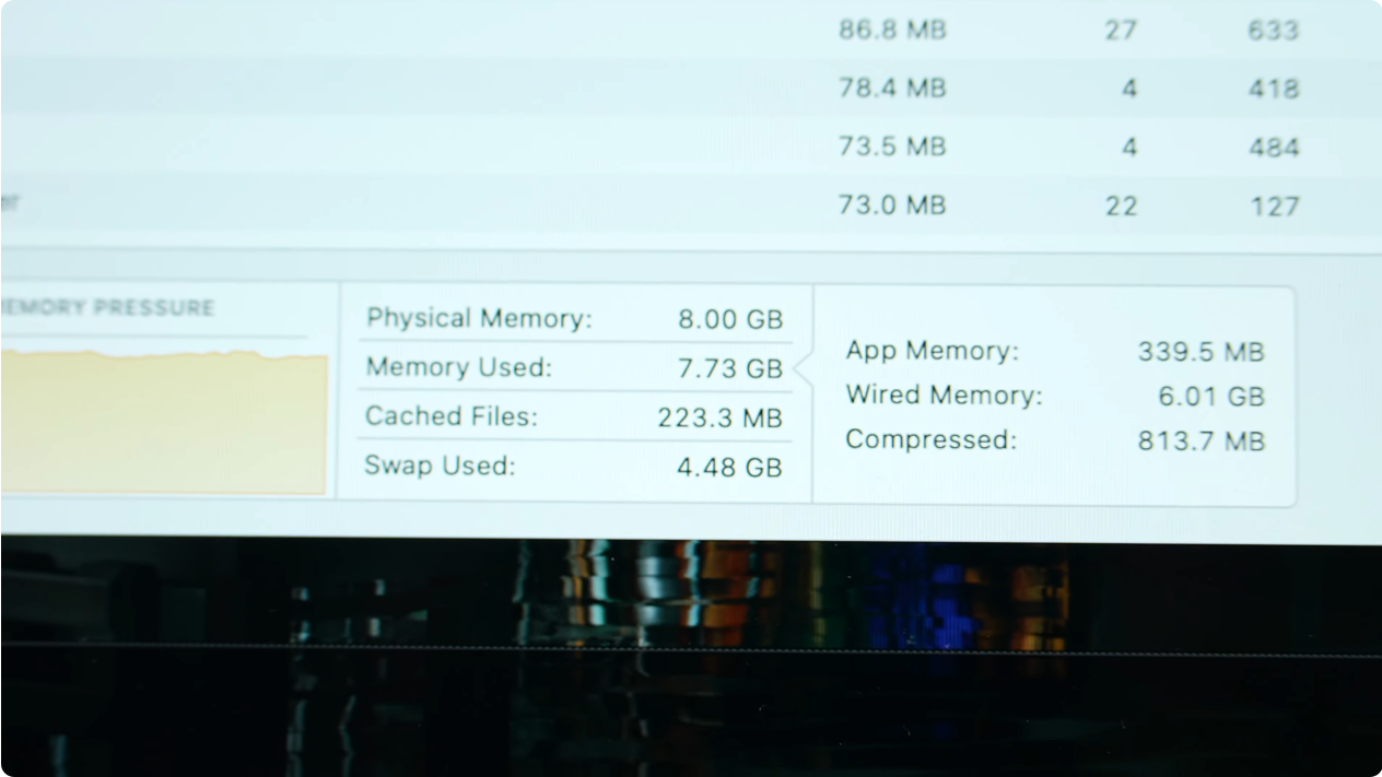 그 결과 8기가 제품은 메모리 스왑이 3기가가 넘게 일어났고, 내보내기 속도도 현저하게 느려졌습니다.