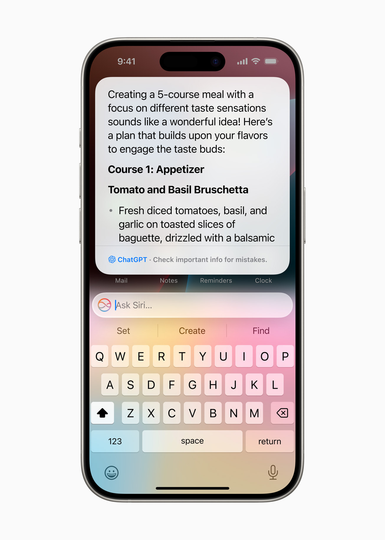 초창기 시리가 등장했을 때만 해도 굉장히 혁신적인 음성비서였으나 이후 구글 어시스턴트나 삼성 빅스비 등에 비해서 말을 굉장히 못 알아듣고 수행할 수 있는 기능이 매우 제한적이라서 사실상 찬밥신세였죠. 그런데 이번 iOS 18 부터는 새로운 AI 기반 서비스로 화면에 표시되는 내용을 인식하고 이를 바탕으로 동작을 수행할 수 있게 된다고 합니다. 그리고 시리 구동 시에도 위의 화면처럼 전체 화면 테두리로 반짝이면서 인식 여부를 알 수 있게 디자인이 바뀌었습니다. 또, 애플의 자체 AI 외에도 ChatGPT가 시리에 통합되어, 자체 AI에서 해결하지 못하는 답변 등은 ChatGPT를 통해서 답변을 제공하는 등 일종의 보조장치가 되어 있습니다.
