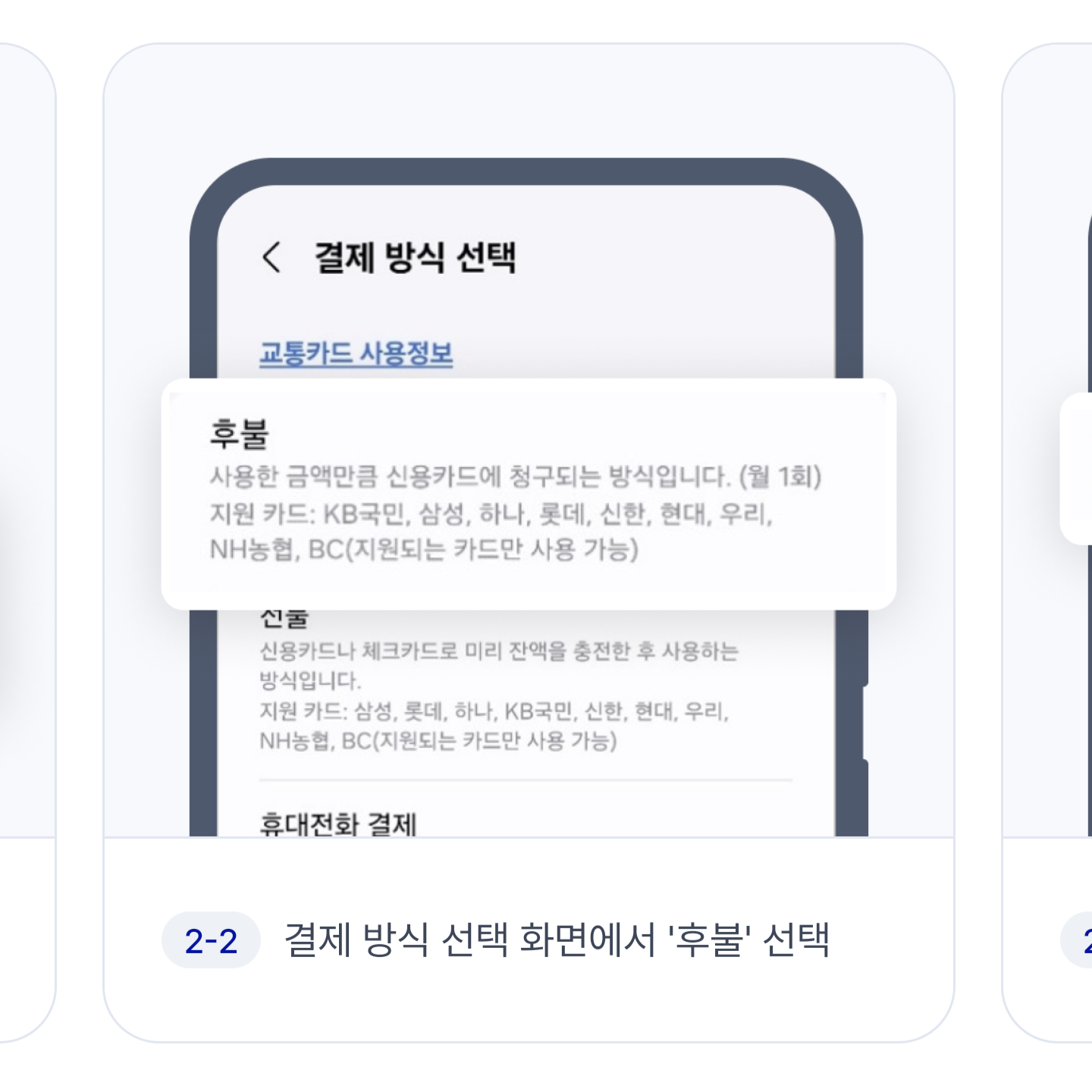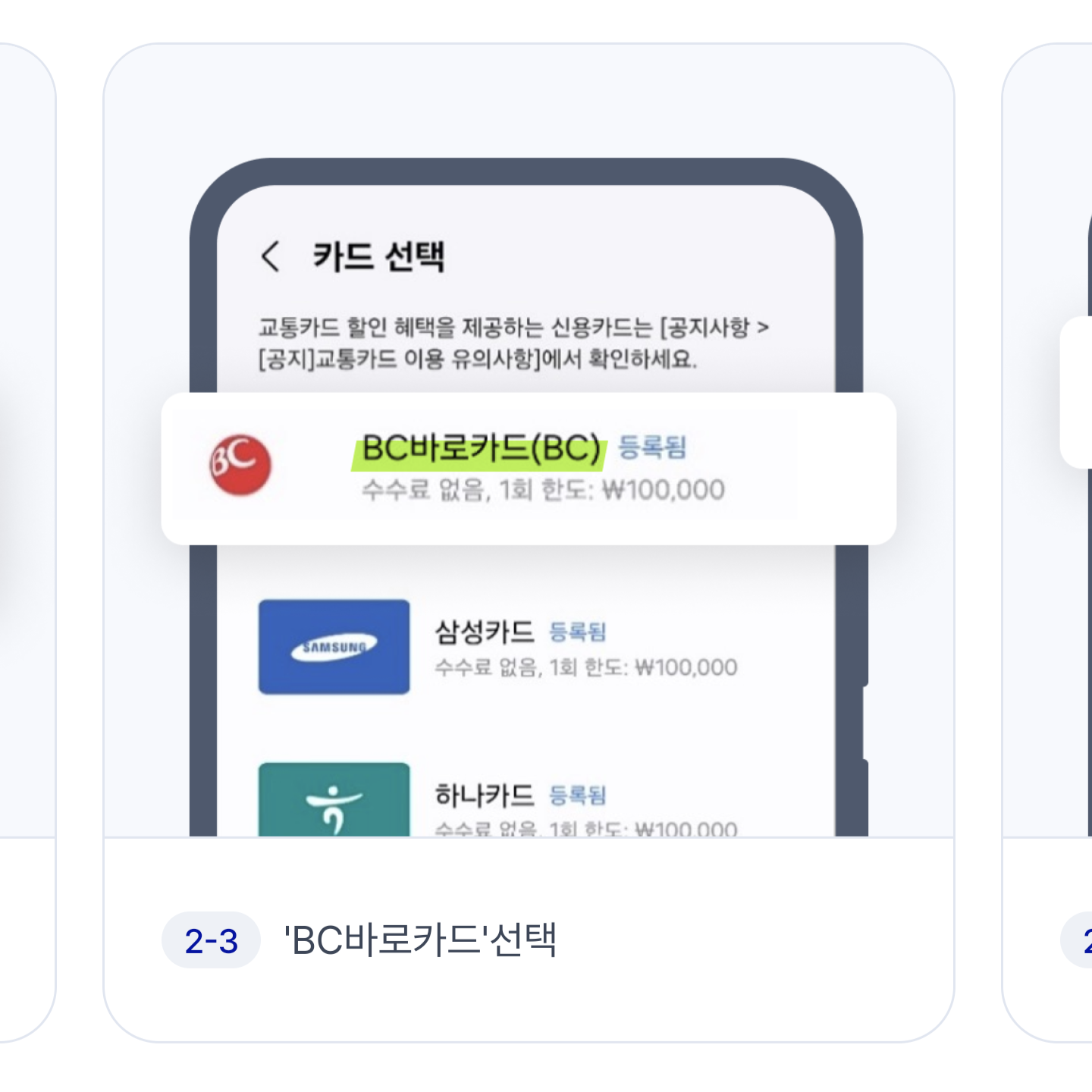 '티머니 교통카드 추가' - '후불' - 'BC바로카드' 선택 - 그리고 조금 전에 등록한 우리의 케이뱅크 교통 전용 카드를 선택하면 됩니다! 이렇게 하면 앞으로 교통카드 결제는 K뱅크 교통카드를 통해서 이루어집니다.