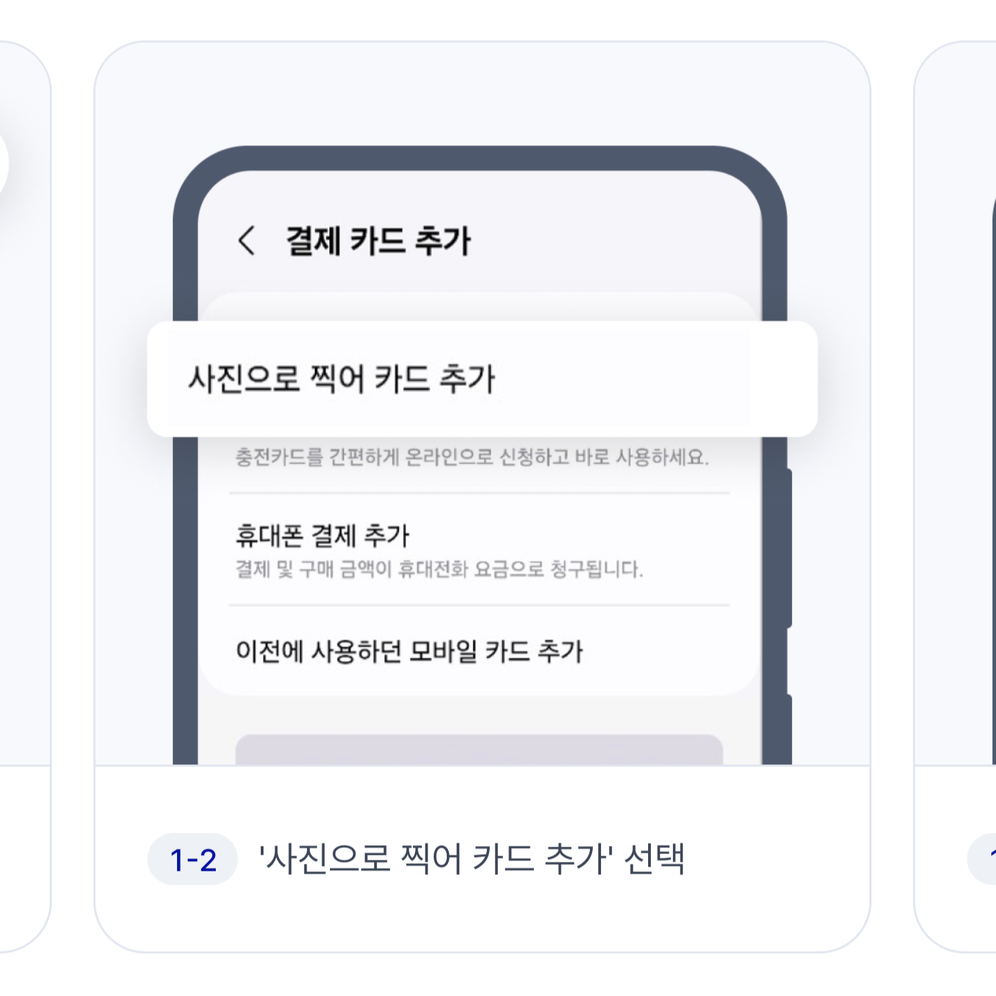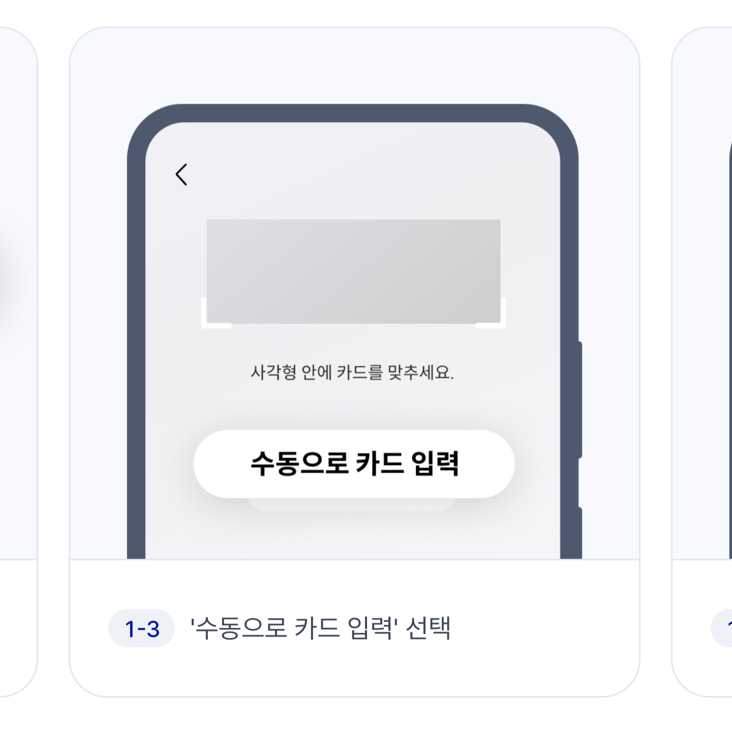 먼저 삼성페이 (삼성 월렛)을 실행한 다음 '내 지갑'에서 카드를 추가해야겠죠? 여기에서 '사진으로 찍어 카드 추가'를 누른 다음, '수동으로 카드 입력'을 선택합니다. 그러면 카드 번호를 넣어야겠죠?