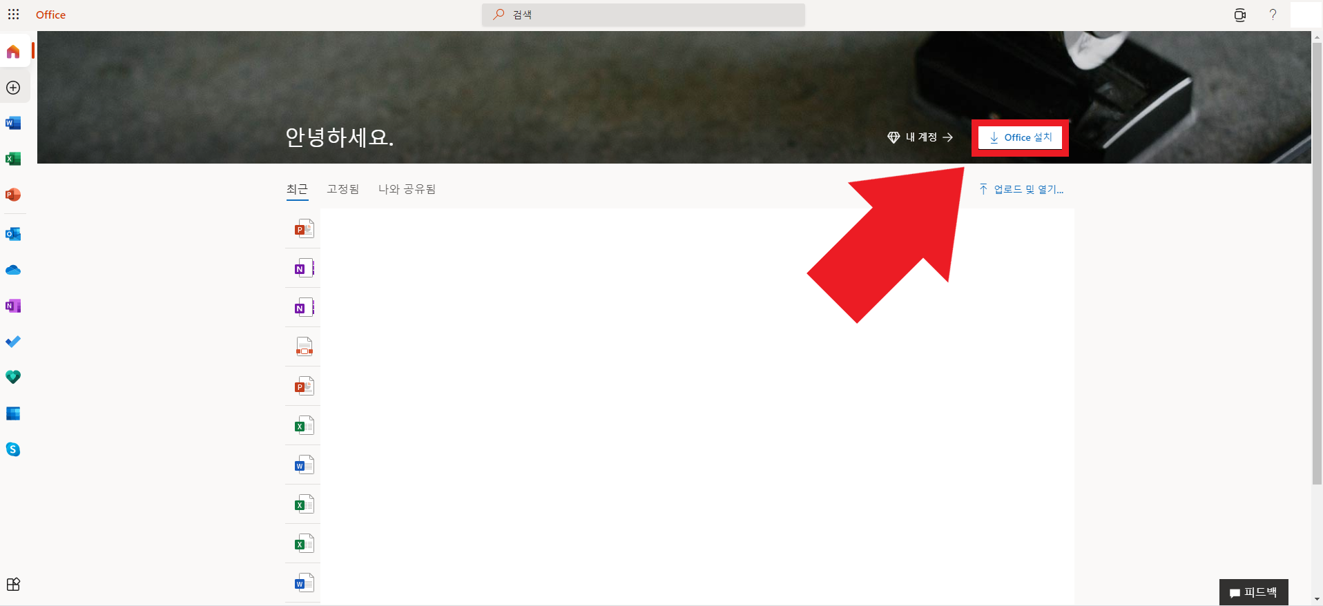 여기서 Office 설치 버튼을 누르면 설치가 가능합니다 +_+