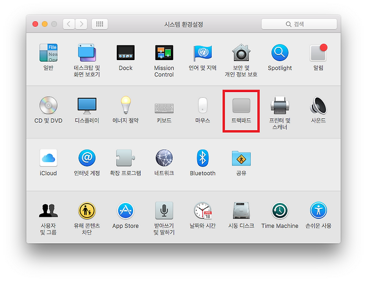 [트랙패드] 부분을 클릭합니다.