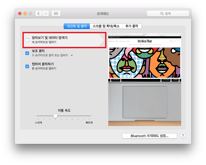 [포인트 및 클릭] 부분을 보면 첫 번째로