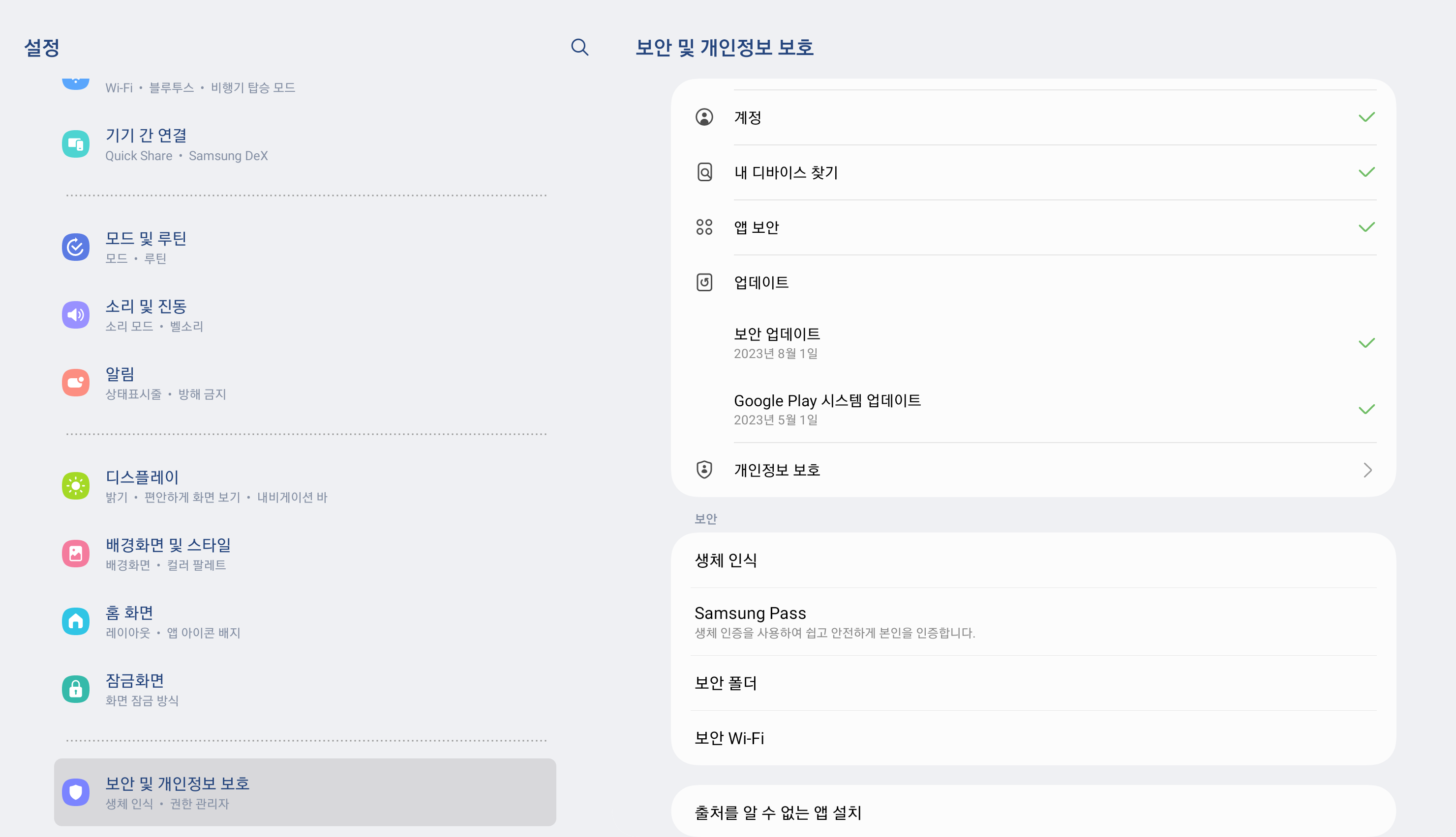 설정 - 보안 및 개인정보 보호 - 업데이트 - Google Play 시스템 업데이트