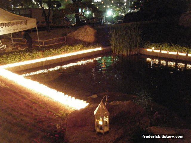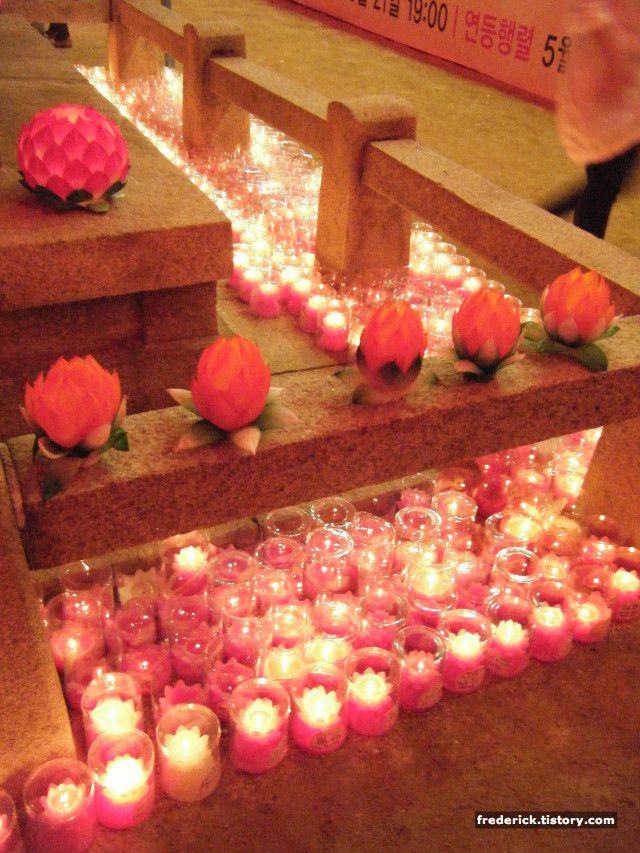 연꽃모양 초들도 늘어서 있고 소원을 비는 사람들도 많았습니다-