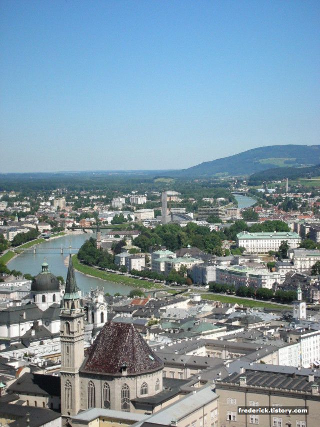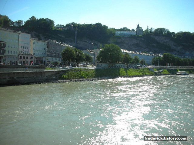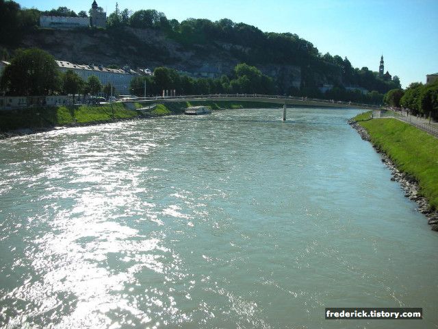 Salzburg는 Salzach (잘자크) 강을 끼고 있습니다. 이 강은 독일까지 약 225킬로미터의 구간으로 이어집니다. 그런데 강의 이름이 좀 특이하죠- 바로 독일어의 Salz (소금) 이라는 말에서 강의 이름을 붙였습니다- 19세기까지 이 강은 소금을 실어 나르던 배의 중요한 이동 경로였는데, 이후 배가 아닌 기차로 소금을 실어 날랐지만, 그래서 이름이 "소금" 이라는 Salz에서 유래하여 Salzach가 되었습니다- 이제는 더 이상 소금을 실은 배를 볼 수는 없습니다 ^-^;