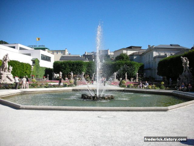 가운데에는 이렇게 분수도 있구요- 한여름에 가면 조금 덥기는 하지만 그래도 가장 화창하고 예쁜 미라벨 궁전을 볼 수 있습니다.