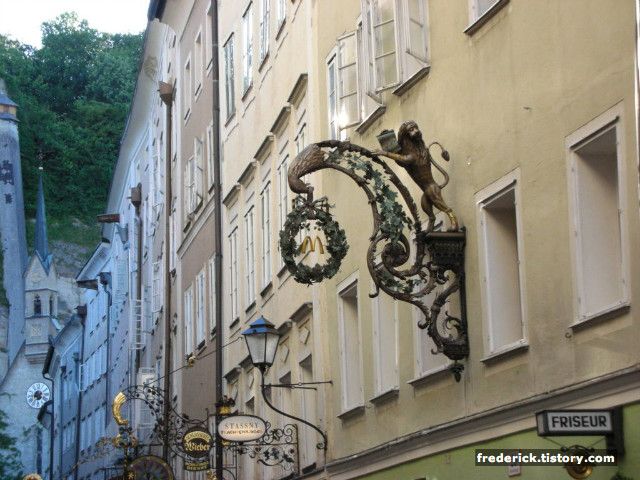잘츠부르크의 자랑거리 또 하나! 바로 간판입니다- 보이시나요 맥도날드의 M