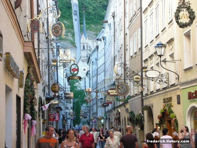 바로 이렇게 말입니다. 아무리 전 세계에서 영향력이 있는 맥도날드라고 해도 잘츠부르크 구 시가지에서 영업을 하고 싶다면 따라야 합니다 ^-^; 아니면 간판 없이 장사를 하든가요-ㅋ 덕분에 잘츠부르크는 이런 간판을 보기 위해서 오는 관광객들도 꽤 있습니다- 우리가 이런건 배워야 할 점이죠- 무조건 서양식, 현대식으로 다 갈아치우고 보기 싫은 아크릴판으로 가져다가 붙일게 아니라.....