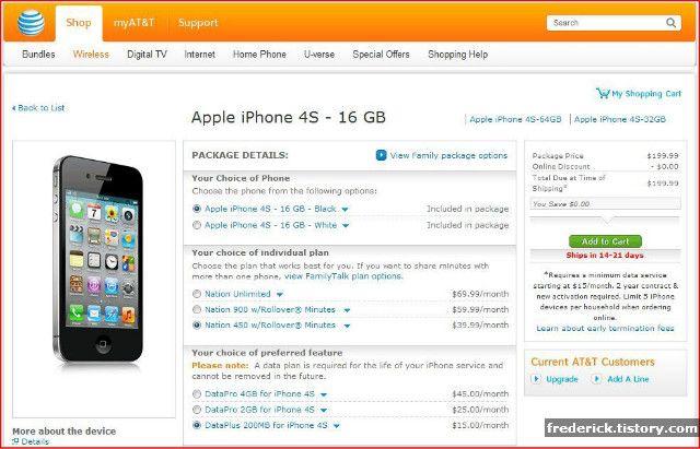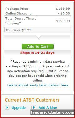 그리고 이 계약에 아이폰 가격 199,99 USD