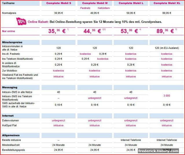 기본 요금이 44,96 EUR, 그리고 온라인으로 가입시 월 10%의 기본료 할인을 12개월간 해 줍니다.